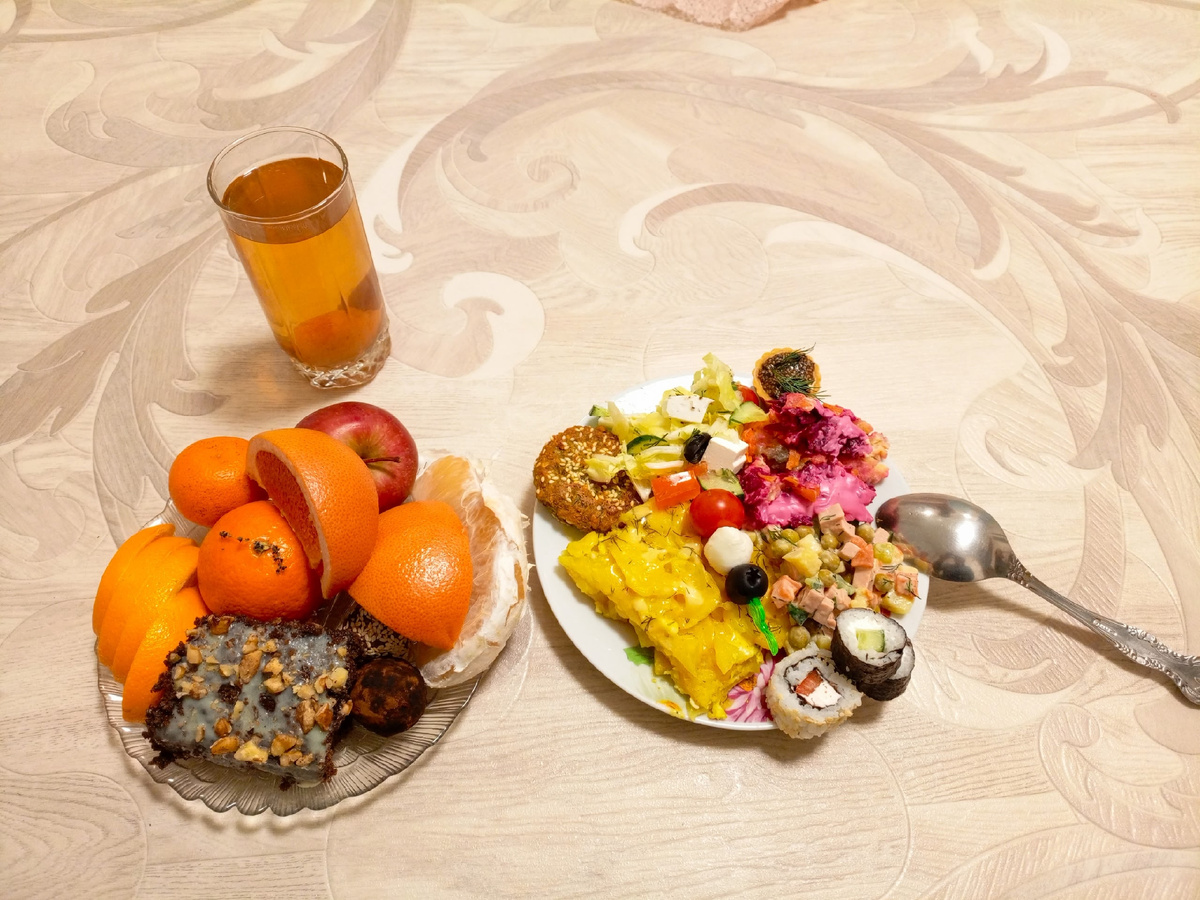 Привезли с собой салат «Шубха». Это та же «Селедка под шубой», только ни одна селедка при приготовлении не пострадала. У вегетарианцев рыба заменяется замаринованными баклажанами. Вкус практически тот же. Ума не