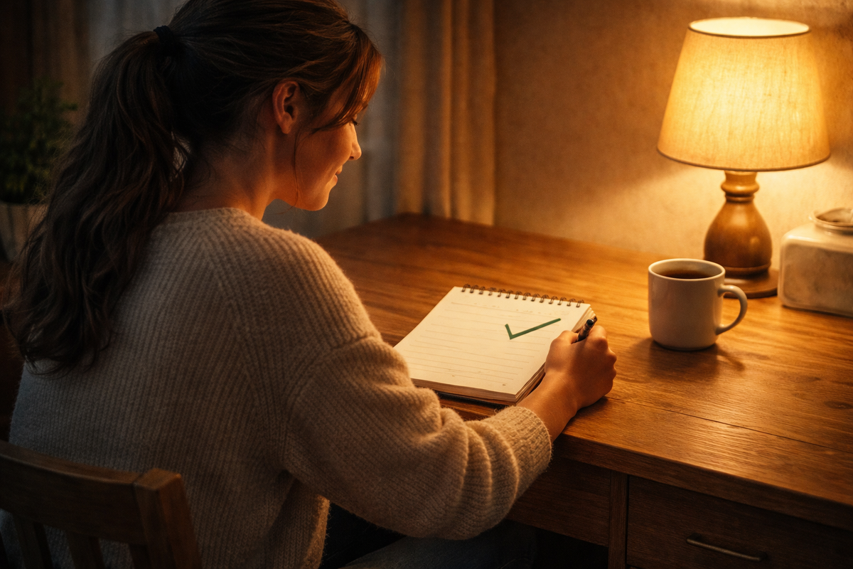 Шаг 1 Утром: подумай, что для тебя будет хорошим результатом сегодняшнего дня. Здесь не важен масштаб этого результата. Если для тебя на сегодня хороший результат - это помыть посуду или приготовить ужи, то нуже достаточно. ты сам определяешь что это будет.
