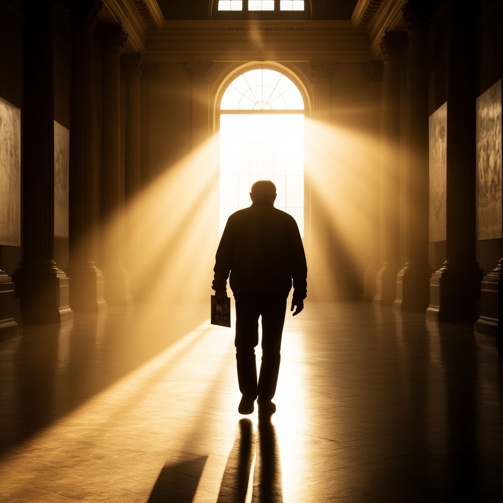 Коридор пах сыростью и старыми книгами. Михаил Петрович шел медленно, будто плыл под водой. Его рука скользила по шершавой стене, не касаясь табличек. Он помнил их все: «Хранение фондов», «Ремонтный отдел», «Архив». Он сорок лет отдал этому музею, и каждый угол здесь был частью его самого. Цель была в самом конце - дверь с матовым стеклом и почти стершейся надписью «Фотоработник». Комната, которую он должен был освободить к концу недели. Внутри царил привычный творческий хаос. Но на столе, аккуратно отодвинув в сторону склянки с реактивами, лежала одна-единственная фотография. На ней - музейный двор, залитый сентябрьским солнцем. Не он сам, нет. А его тень, длинная и четкая, падающая на золотые листья. Рядом с ней – маленькая, корявая тень дворника Савелия, который курил, прислонившись к фонарю. Две тени, почти соприкасающиеся, вели молчаливый диалог. Михаил Петрович взял снимок. Он вдруг вспомнил тот день: спешил, волновался из-за предстоящей выставки, даже не заметил Савелия. А объек