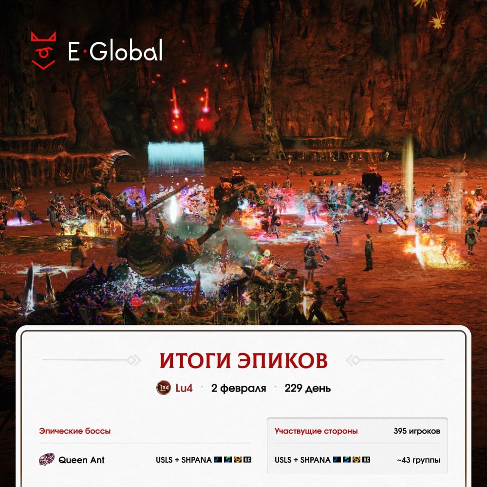 Репортаж от knif 19:30 Не смотря на то, что оппозиции на горизонте не замечено, альянс USLS и SHPANA пунктуально регрупаются в Hunters Village/Gludin. 19:50 Альянс на порт споте. 19:55 Начинают движение. 20:00 Альянс в ожидании выхода Queen Ant из камня. Как только босс стал доступен для атаки, кланы ринулись вливать ДПС. 20:10 Квина растерзана на мелкие кусочки. Пора приступать к классическому замесу между собой! SHPANA спускаются на личинку в составе 2 кланов. Остальные выходят за речку. Начинается подготовка. 20:18 Погнали. Все рвутся к личинке, где расположены SHPANA. Undercover, Supra и USLS будут пытаться их одолеть. Шпана спрятаны по углам. ХАТА пишет в чате "ГО"! Понеслась. 3 клана заходят внутрь. Супра сосредоточена на Шпане 2, а остальные преимущественно на основном клане. В итоге долгой и равной борьбы SHPANA погибают (часть этого замеса можно увидеть на стриме). Затем все оставшиеся начинают работать по протоколу "все против USLS". В этой борьбе побеждает SKDSH. До в