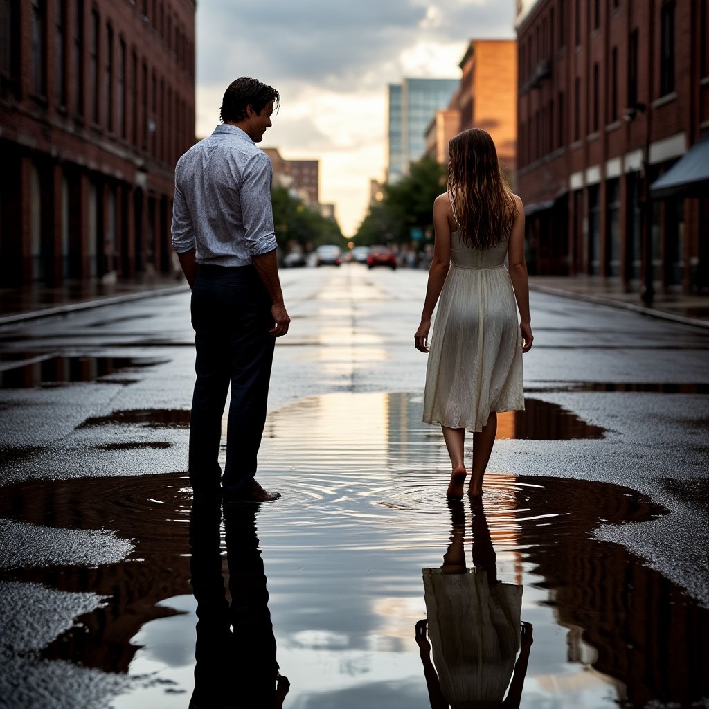 В шесть вечера город вздохнул, сбросив душный плащ жары. Первые тяжелые капли шлепнулись о раскаленный асфальт, и тотчас вверх потянулся знакомый, острый запах - смесь пыли, прохлады и чего-то древнего, земляного. Иван стоял под козырьком магазина, сжимая в кармане ключи от пустой квартиры, и просто дышал. Рядом, у края тротуара, остановилась девушка. Небольшая, в светлом платье, она не пряталась от дождя, а подняла лицо к небу, закрыв глаза. Капли стекали по ее вискам, словно слезы, но выражение лица было безмятежным, даже радостным. «Безумие», подумал Иван, но вдруг вспомнил. Давно, в детстве, он делал так же. Мама ругалась, что простудится, а он стоял, раскинув руки, и ловил ртом капли, веря, что в них – вкус дальних морей и высот облаков. Дождь усилился. Девушка открыла глаза, встретив его взгляд, и улыбнулась. Не смущенная, а приглашающая. Без единого слова. Иван, человек расписаний и планов, отступил от стены. Сделал шаг под струи воды. Еще шаг. Холодный поток обрушился на голову