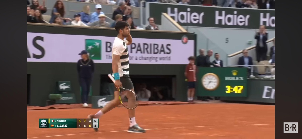 Автор подметил, что в момент, когда Алькарас отыграл три матч-пойнта, время на часах было 3 часа 47 минут. После этого Синнер проиграл все 9 матчей, которые длились дольше этого времени 🤯