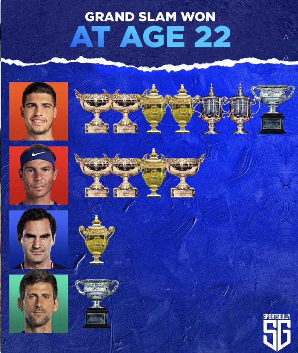 Количество выигранных турниров Grand Slam в возрасте 22 лет: