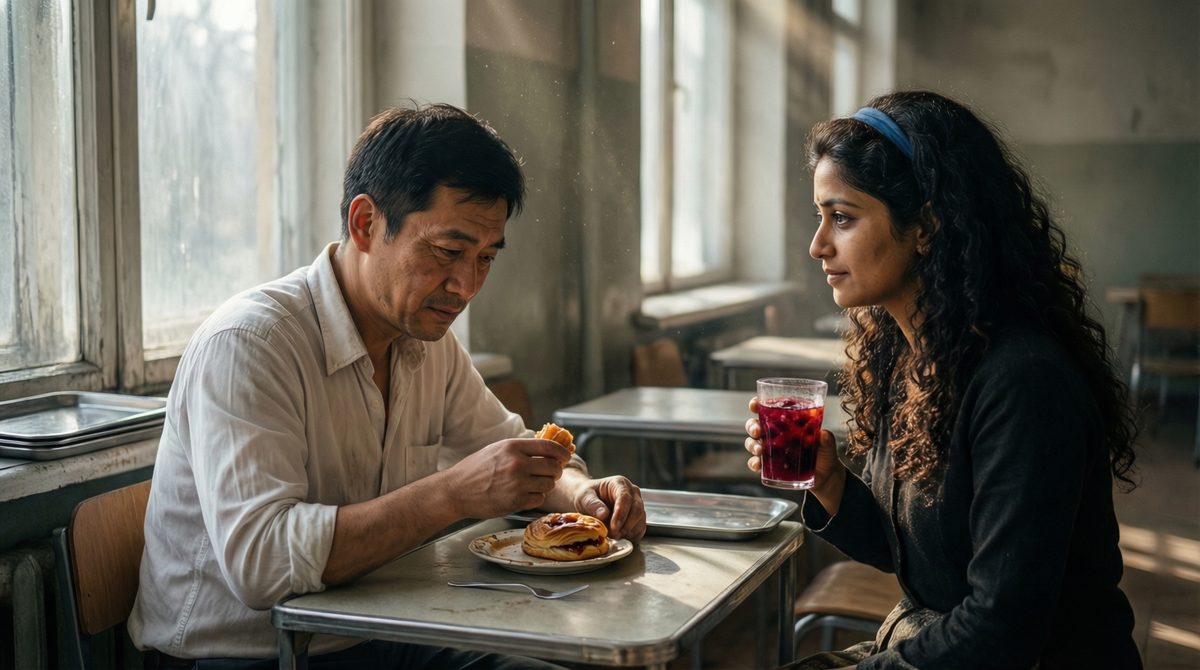 Петров начал лысеть в двадцать пять — как отец, как дед. Сначала редели виски, потом макушка превратилась в гладкое, блестящее поле, будто природа решила сэкономить на волосах и перенаправила все ресурсы на его упрямый характер. Он знал: лысина — не болезнь, но для женского взгляда — приговор. Поэтому освоил искусство начёса: боковые пряди тщательно перекидывались через темечко, закреплялись лаком «Мега-Фикс» и выдерживали даже ветер с Балтики. Обедал он всегда в столовой №3 — скромное заведение при НИИ, где знали всех: кто любит борщ без капусты, кто крадёт чужие ложки, а кто третий год сидит за одним и тем же столиком у окна. И вот однажды там появилась она. Высокая, с тёмными кудрями и взглядом, от которого Петров чуть не подавился котлетой. Она двигалась легко, будто не касалась пола, и садилась за дальний столик, доставая из сумки книгу и пирожок с курагой. Петров влюбился мгновенно — не романтично, а по-настоящему: с болью в груди, сухостью во рту и навязчивой мыслью: «Она никогд
