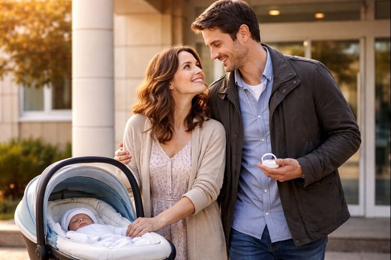 Она повернулась. Антон стоял рядом, одной рукой придерживая коляску с малышом, другой протягивая ей маленькую коробочку.