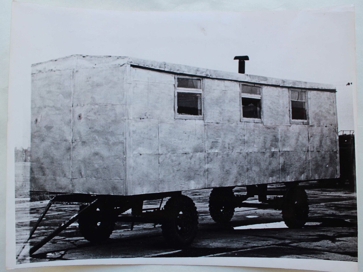 ПОЛЕВОЙ ВАГОН, ОЖИДАЮЩИЙ ОКОНЧАТЕЛЬНОЙ ОТДЕЛКИ, ИЗГОТОВЛЕННЫЙ В ЗИРГАНСКОМ ОТДЕЛЕНИИ СЕЛЬХОЗТЕХНИКИ.