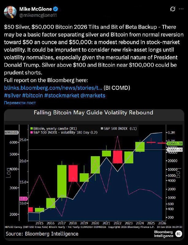 🤔 Старший стратег Bloomberg Майк Макглоун предсказывает, что цена Биткоина может упасть до $50,000