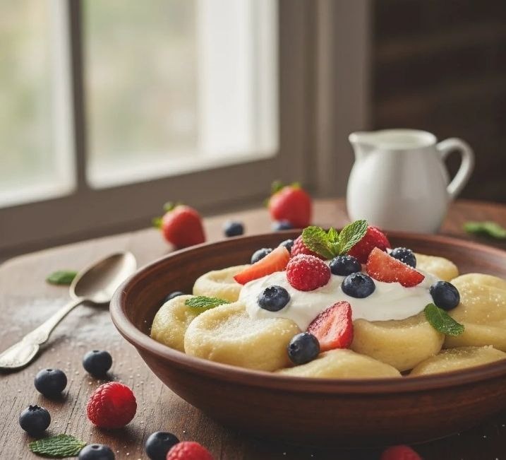 »❄️ ⏱15 минут | 195 ккал(100 г) 🛒Что нужно: 🍚Творог — 300 г 🥚Яйцо — 1 шт. 🌾Мука — 4 ст.л. 🍬Сахар — 1 ст.л. 🧂Соль — щепотка 🍯Сливочное масло — 20 г 🍒Ягоды или мед для подачи 👩🍳Как готовить: Разомните творог вилкой вместе с яйцом, сахаром и солью. Постепенно всыпьте муку и замесите мягкое тесто. Скатайте из теста длинную колбаску и нарежьте её на небольшие кусочки-медальоны. Опустите их в кипящую подсоленную воду и варите 2–3 минуты после того, как они всплывут. Выловите вареники шумовкой, добавьте кусочек сливочного масла и подавайте со свежими ягодами или ложечкой ароматного меда. Вкусные Рецепты 👍