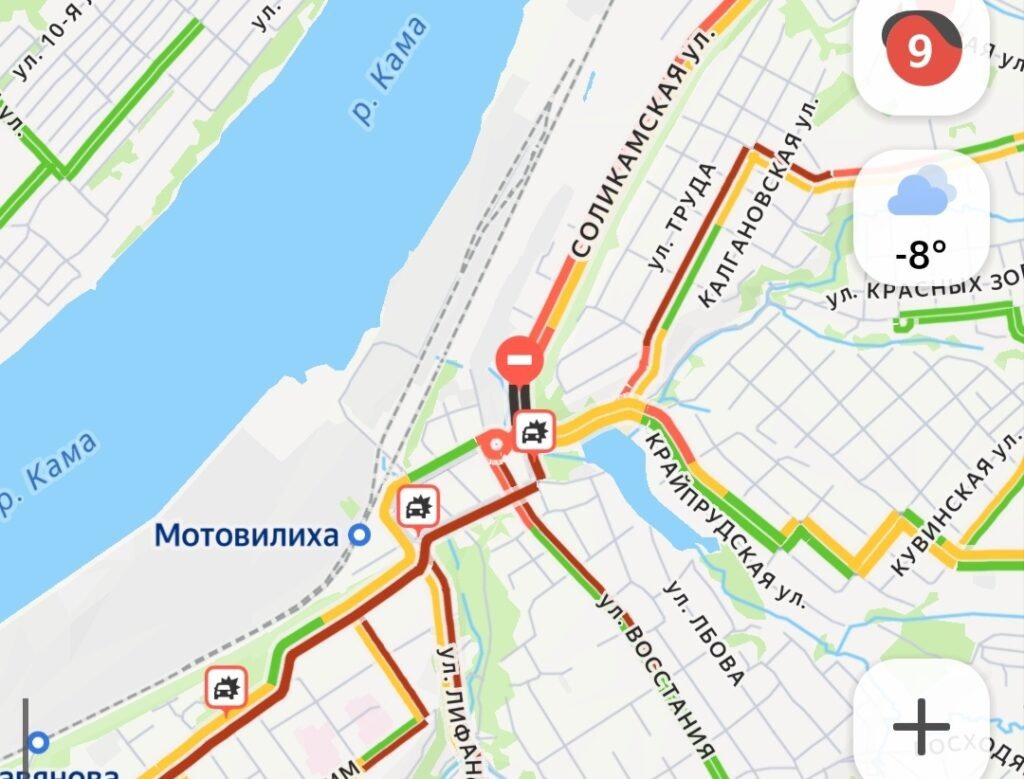 Причиной стали несколько аварий и погодные условия. В Мотовилихинском районе Перми в районе площади Восстания и соседних улиц сегодня, 3 февраля, с утра пробка в 9 баллов. С 8 утра автомобили и автобусы выстраивались в один большой «паровозик» из-за нескольких ДТП: на Соликамской, на перекрестке улиц Лифанова и 1905 года, на Мостовой и на Уральской. Осложняются ситуация и прошедшим ночью снегопадом. Как сообщают в департаменте транспорта Перми, отставание автоюусов от маршрута составляет примерно 50 минут. Пермяки в соцсетях выкладывают видео, как люди выходят их автобусов и идут по дороге пешком. Как пояснили в ЦБДД, на 1905 года — Лифанова ситуация сложная: фура не может заехать в горку из-за погодных условий, создавая дополнительное препятствие.