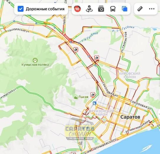 "Яндекс" оценивает дорожную ситуацию в 10 баллов. С 08:10 прервано движение трамваев №№ 4, 6. Нет напряжения - "Саратов транспортный". ▫️САРАТОВ ОНЛАЙН ▪️ЭНГЕЛЬС ОНЛАЙН 📲 Мы в мессенджере MAX