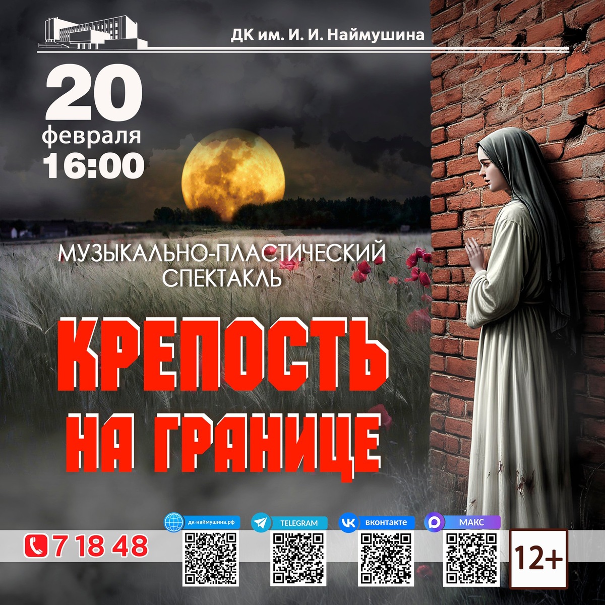 В 4 часа 15 минут по московскому времени тяжкий грохот прошёл по стенам каземата Брестской крепости…Сквозь оглушительные взрывы тяжёлых снарядов и нарастающий вой немецкой авиации стало ясно…ВОЙНА! Дворец культуры имени И.И. Наймушина приглашает жителей Усть-Илимска к просмотру музыкально-пластического спектакля «Крепость на границе». Эту историю подвига должен знать каждый! 20 февраля, 16.00 Концертный зал Билеты в кассе Дворца 12+