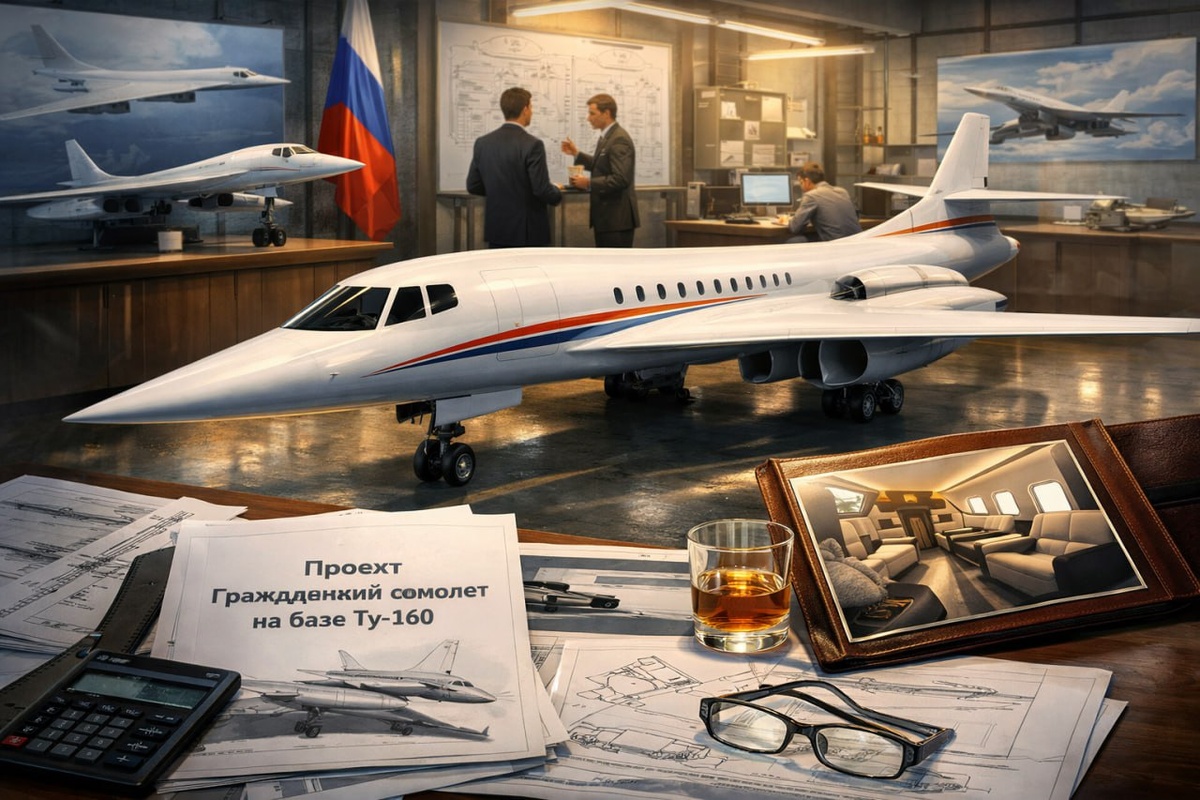 Идея создания гражданского самолёта, на базе Ту-160, возникла не как продуманная инженерная программа, а как политико-промышленный импульс на волне возобновления производства стратегического ракетоносца в 2018 году. Запуск серийного «нового Ту-160» (в версии Ту-160М) был призван продемонстрировать технологическую состоятельность российской авиапромышленности, загрузить Казанский авиазавод и реанимировать компетенции по сверхзвуку. В этой логике предложение «а давайте сделаем гражданский самолёт на его базе» выглядело естественным продолжением — как способ показать, что военные технологии могут приносить коммерческую отдачу и символизировать научно-технический престиж страны. Однако с самого начала это была скорее концептуальная рамка, чем реальный проект. Под формулой «на базе Ту-160» подразумевалось не прямое переоборудование стратега в лайнер, а использование его технологического задела: композитов, аэродинамических решений, производственной кооперации, опыта работы со сверхзвуком и