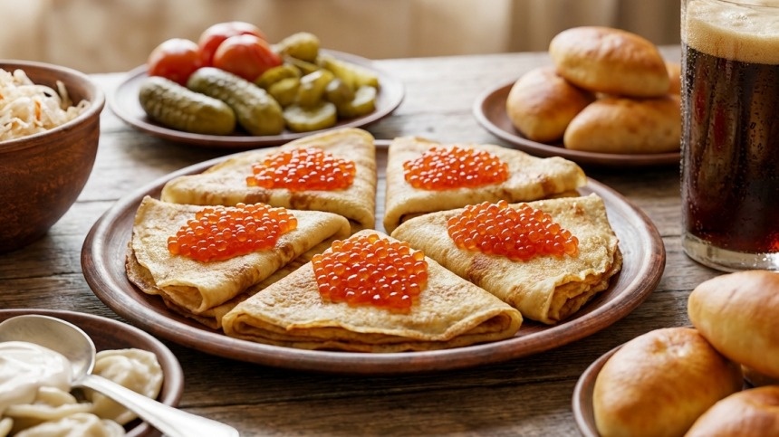 Кроме блинчиков, на стол подавали пироги, вареники, квашеную капусту и соленья. Все это запивали сбитнем, квасом или медовухой.
