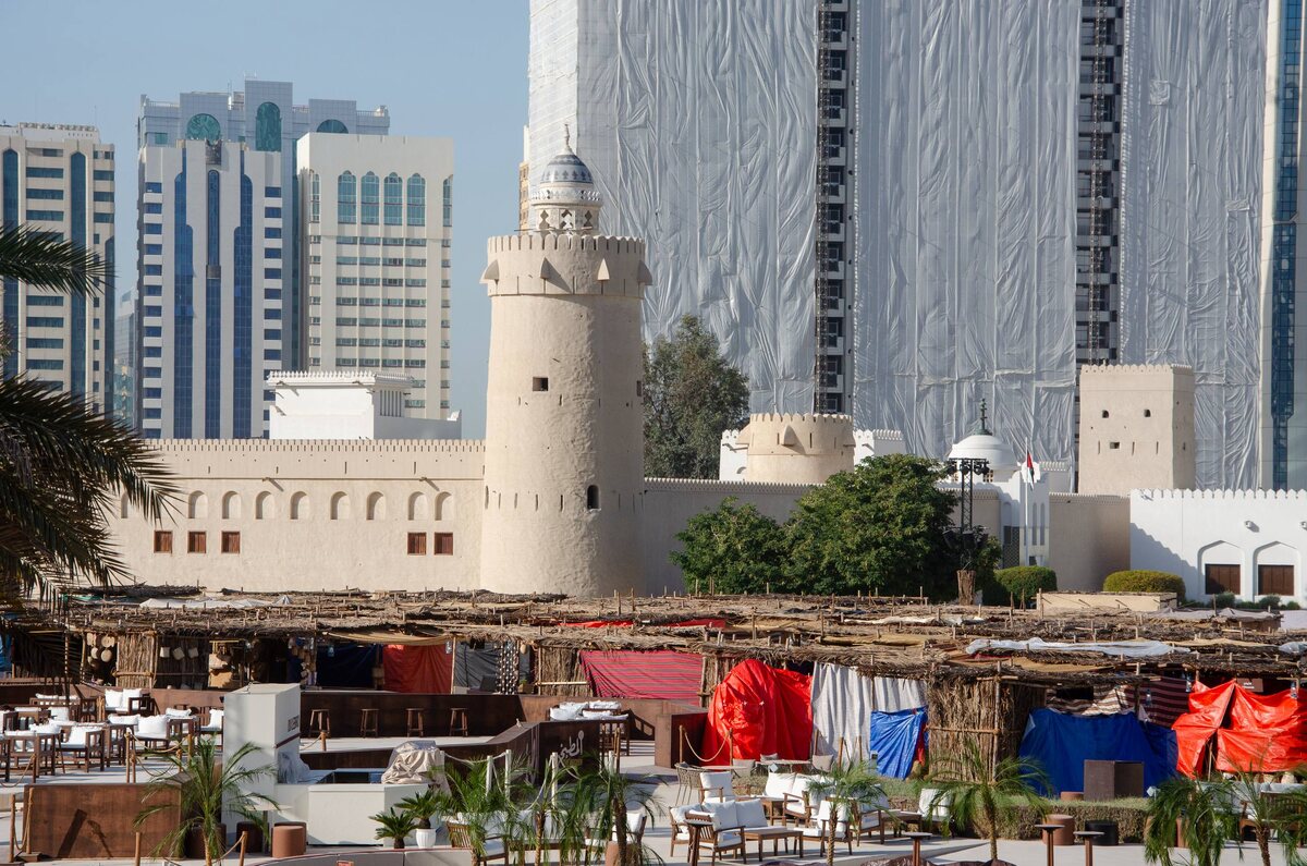 Внимание! Мой пешеходный маршрут по Абу-Даби подойдет не всем. Я могу спокойно пройти за день больше 40 000 шагов, в этом случае их было больше 45 000. Поэтому, трезво оценивайте свои силы, пользуйтесь автобусами, так как стоят они в Абу-Даби копейки, ходят часто, номера маршрутов и время прибытия на остановки можно посмотреть на Google Maps. Маршрут начинается от крепости аль-Хосн. Именно с этой крепости началось поселение и сейчас это самое старое здание в столице Эмиратов. Снаружи крепость выглядит как новодел, но нет, это просто хорошая реставрация постройки конца 18 века. Внутри располагается музей, но мы в него попасть не смогли, так как в это время вокруг крепости проходил фестиваль. Перекрытия, досмотры, платный вход и очень много людей. Далее мы вышли к набережной Корниш, которая протянулась на 8 км вдоль Персидского залива. Прогуливаться по ней одно удовольствие! Море, зелень, широкий променад, выделена велодорожка для велосипедов, туалеты и даже краны с питьевой водой. Зд
