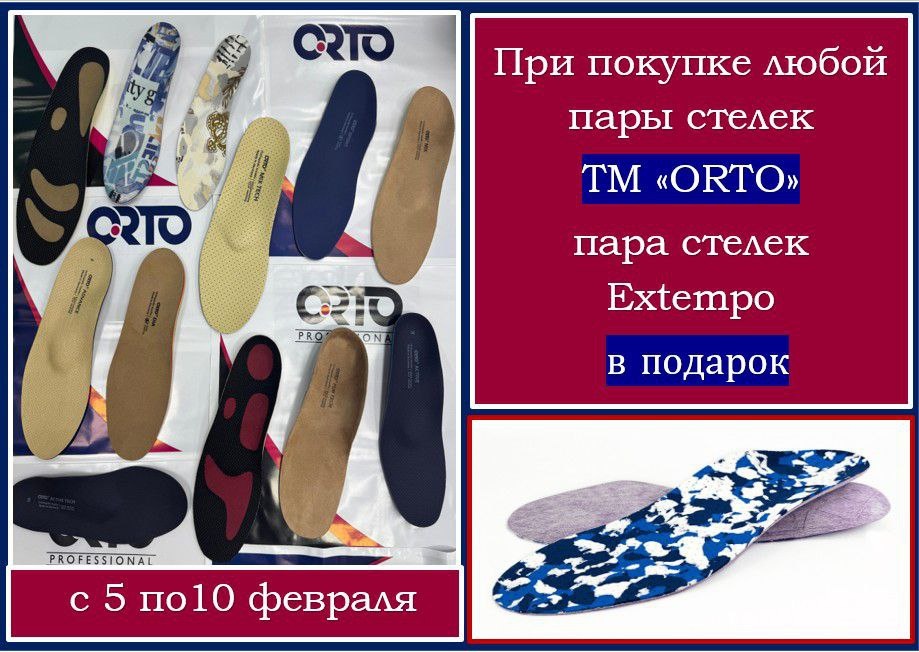 ! Покупая любые стельки торговой марки ORTO в период с 5 по 10 февраля, в подарок вы получите пару стелек Extempo E-arch colorform Не забудьте предупредить консультанта, откуда вы узнали про акцию 😉 ТЦ Пихта 10:00-20:00 Большая 88 ☎️ 8 924 101 20 90 Оборонная 8 09:00-19:00 Остановка РЭБ Флота ☎️ 8 924 205 99 17 Льва Толстого 15 09:00-19:00 (вход с ул. Пушкина) ☎️ 8 929 400 08 78 ТЦ Южный парк Суворова 25 1 этаж, бутик 131 10:00-21:00 ☎️ 8 924 413 05 05