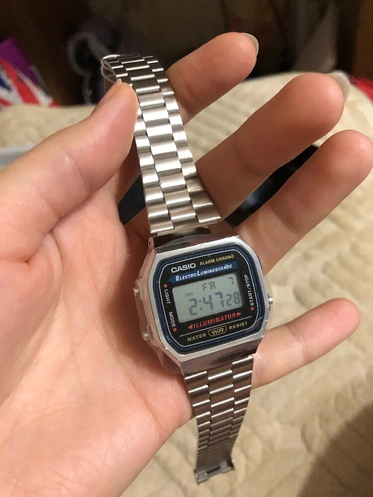 Японские мужские часы. Коллекция Vintage. Удобные и лаконичные часы в стиле ретро. Тип механизма: кварцевый. Корпус: пластик. Циферблат: ЖК серый. Браслет: стальной. Водозащита: WR. Подсветка: светодиодная. Звуковой сигнал: будильник, ежечасный сигнал. Стекло: пластиковое. Календарь: автоматический: число, день недели. Габаритные размеры: 33х36,8, толщина 9,1мм, вес 48г.