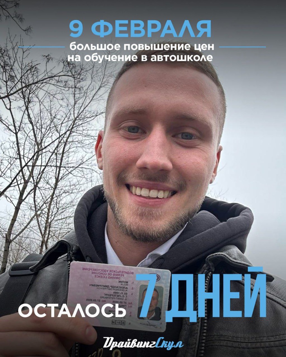 🌀 Осталось 7 дней до повышения цен на обучение в автошколе ДРАЙВИНГСКУЛ