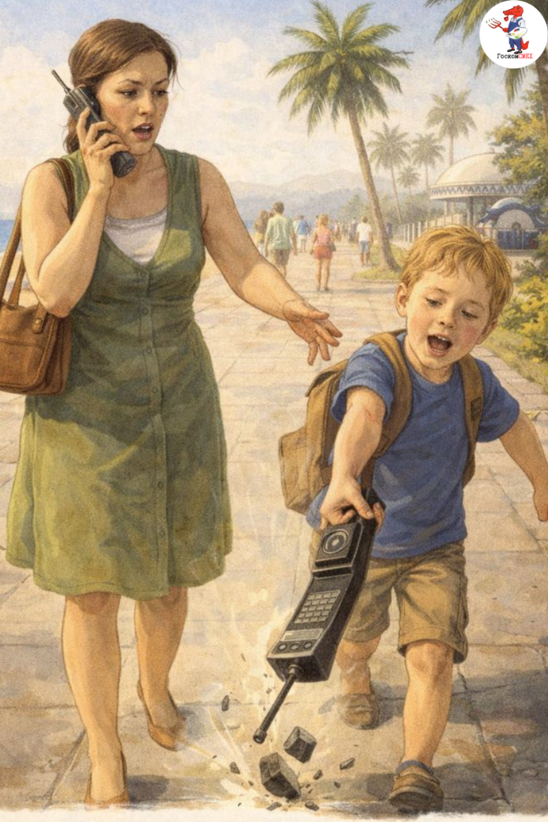 Середина нулевых, конец июня. Адлер. По улице бодро шагает молодая мама с сыном и оживлённо беседует по телефону с мужем, оставшимся дома. Телефон — из тех, что в то время считались предметом роскоши: дорогой, тяжёлый и вызывающе статусный. Наконец разговор подходит к концу, и женщина передаёт трубку сыну: