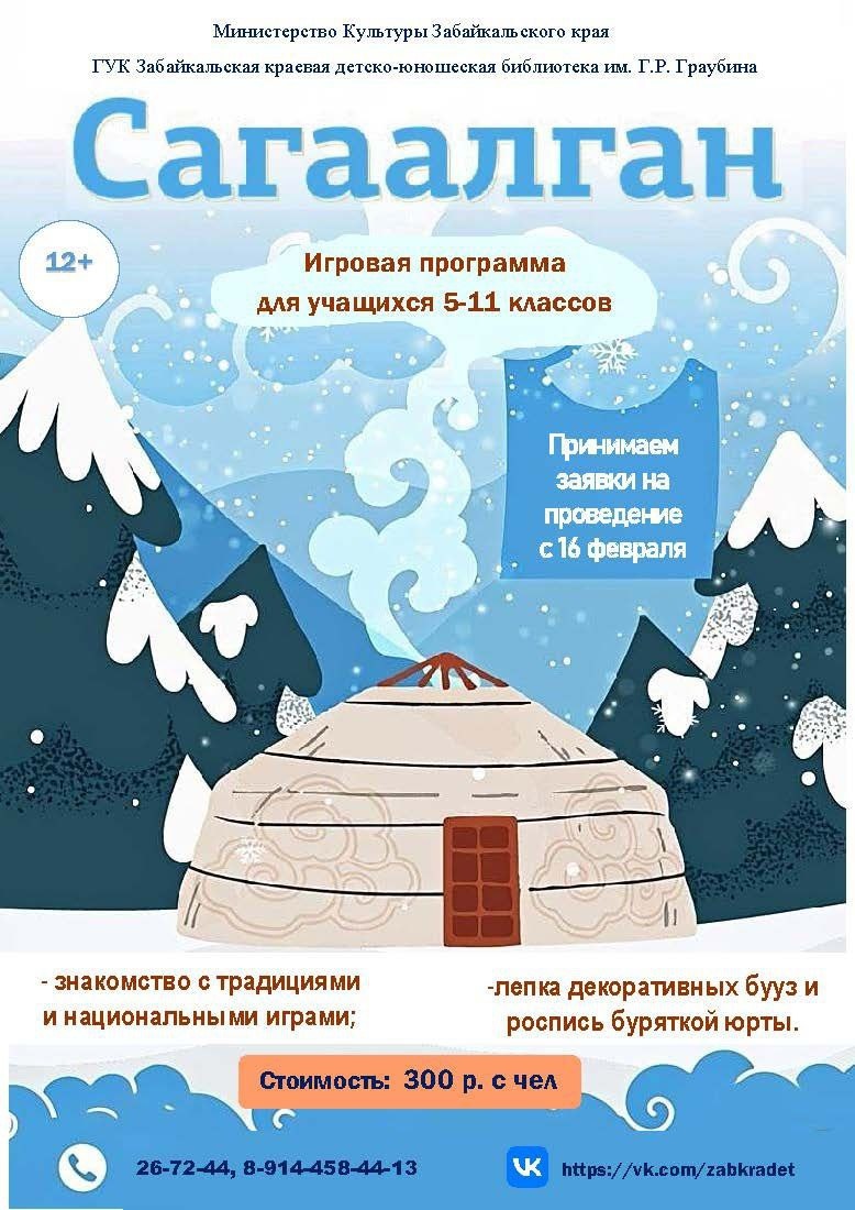 » Организаторы предлагают узнать историю древнего праздника Нового Года по лунному календарю и окунуться в атмосферу радости и веселья. Гостей ждут национальные игры, мастер-классы по лепке декоративных бууз и роспись юрты-шкатулки. 📍Забайкальская краевая детско-юношеская библиотека им. Георгия Граубина, Горького, 38 🪙300 рублей 🔑заявки принимаются для групп от 10 человек по телефонам: 26-72-44, 89144584413 #Новости Предложить публикацию:@zabkulisye_bot
