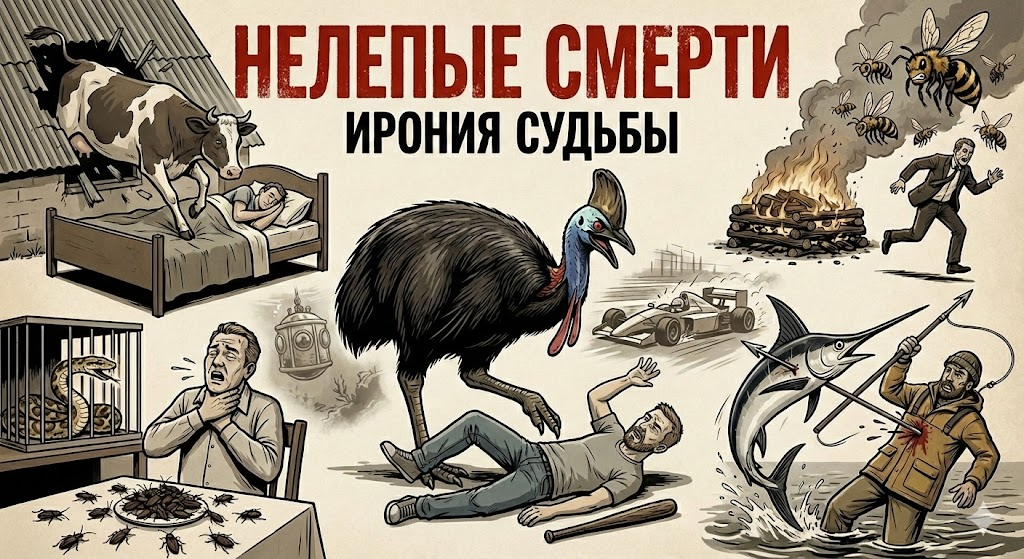 Нелепые смерти часто кажутся нам чем - то из области кино или черного юмора, но реальность порой подкидывает такие сюжеты, что сценаристы "Пункта назначения" просто курят в сторонке. Мы привыкли думать, что жизнь - это логическая последовательность событий, где за хорошими поступками следует награда, а за осторожностью - безопасность. Но архивные материалы показывают: иногда всё решает случай, дурацкое стечение обстоятельств или просто неудачный прыжок верблюда... ой, простите, в этот раз у нас герои посерьезнее. Я собрал для вас истории, которые заставляют по - новому взглянуть на концепцию "безопасного мира".
