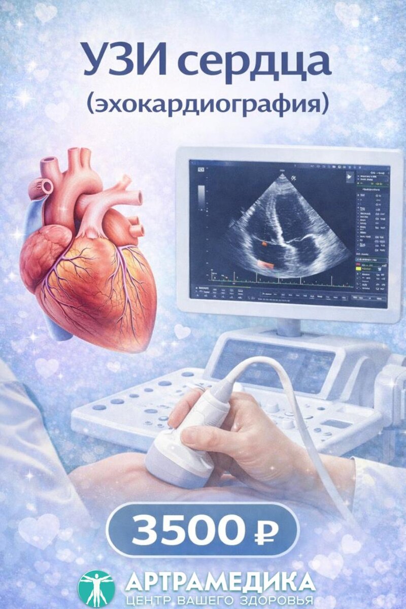 ❤️ Оно работает без выходных, без отпусков и без лишних жалоб. 🫀 УЗИ сердца (ЭхоКГ) — это спокойный, бережный разговор с собственным сердцем. Без боли, без суеты, без страшных слов. Просто посмотреть, как оно двигается, сокращается, открывает и закрывает клапаны, как справляется с нагрузкой жизни. В АРТРАМЕДИКЕ это исследование проводит врач-кардиолог — внимательно, аккуратно и на современном оборудовании. Вы лежите, дышите 🌿, а сердце показывает, как у него дела. Результаты — в день обращения 📄 ЭхоКГ помогает увидеть: — как работает сердечная мышца — как движутся клапаны — как чувствуют себя камеры сердца — всё ли гармонично и слаженно внутри ✨ А ещё у нас действительно хорошие цены — потому что забота о сердце должна быть доступной. 📍АРТРАМЕДИКА, Истра, ул. Рябкина, 41 Записаться 📞 +7 (977) 000-71-81 https://artramedica.ru/bonus 18+ Имеются противопоказания, необходима консультация специалистам