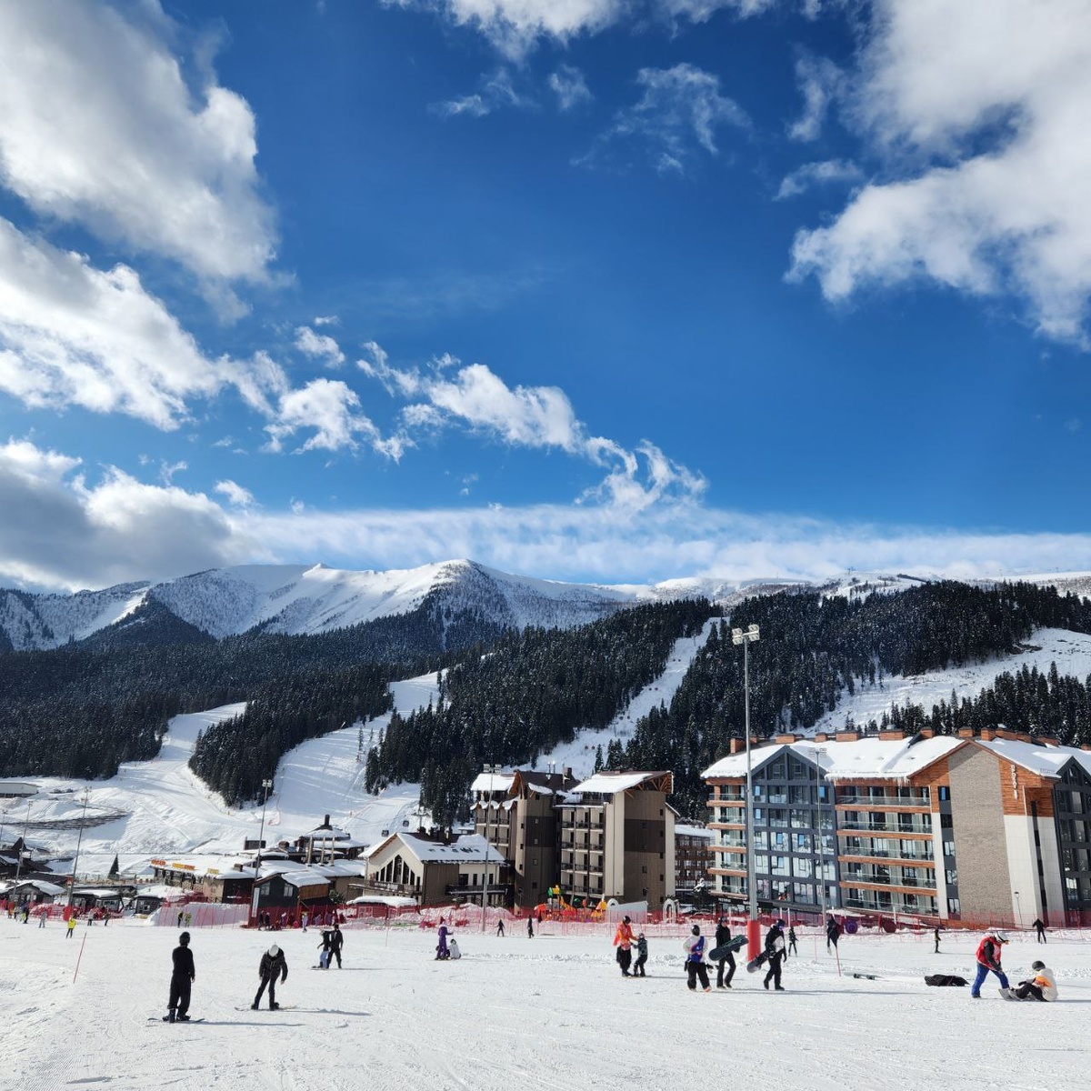 Решил разведать на будущее основное катание Архыз, Домбай и Эльбрус. На фото - Архыз. Здесь много зеленых трасс для начинающих, основные для продолжающих – синие. Есть красные и черные. Все достаточно комфортные для катания, но разметка ужасная: можно легко выскочить с синей трассы на черную. Также легко получить травму от разогнавшегося и не справившегося со скоростью новичка. Горы не очень высокие, трассы в сосновом лесу. Воздух прекрасный. Подъемники относительно новые. Аренда лыж и бордов на любой вкус. Работа касс ужасная: во-первых, дикие очереди (говорят, что специально не открывают достаточное количество окошек, чтобы продавать ски-пасы в обход «по-дружбе»). В это вполне можно поверить, когда после катания до завершения работы подъемника у тебя покупают ски-пас, стоящий 3 400 рубю, за 500 – 1000 руб. местные «жучки». Охрана им не препятствует. А ски-пасы продают только на целый день. Никакой почасовой системы тарифов нет. Сам Архыз – горная деревня со своеобразным колоритом. Б