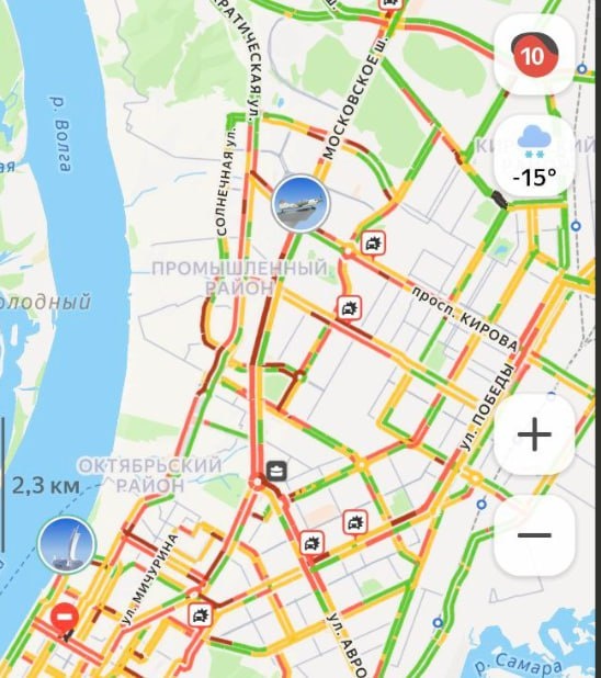 Сегодня, 3 февраля, ситуация на дорогах достигла своего пика — согласно сервису «Яндекс.Карты», уровень пробок составил 10 баллов Особое внимание привлекают главные магистрали города: 🔴Московское шоссе; 🔴 улица Ново-Садовая Эти участки отмечены красным цветом, что означает максимальную загруженность и почти полное отсутствие свободного передвижения транспорта. 🔻Кроме того, в городе зарегистрировано сразу 10 дорожно-транспортных происшествий. 📸: скрин «Яндекс.Карты» ГТРК Самара MAX lВК lОК lСАЙТ 🔹🔹🔹🔹🔹🔹🔹🔹🔹🔹