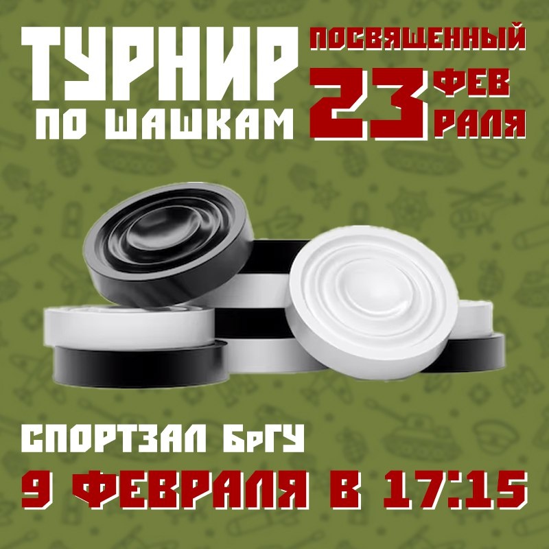 Приглашаем студентов БрГУ на Турнир по шашкам, посвященный 23 февраля