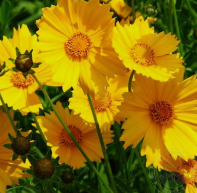 Котовник Фассена. Его лилово-синие соцветия напоминают лаванду. Все части растения очень ароматны – с нотками мяты, розы и лимона. Предпочитает расти на солнечном месте с легкой сухой почвой. Кореопсис крупноцветковый. Яркие золотисто-желтые ромашки наполняют сад уютом и теплом с начала лета и до самых заморозков! Очень неприхотливое растение. Посадите на солнце – и покажет себя во всей красе. Смолёвка Шафта. Плотные коврики, усыпанные нежными цветками-звездочками, создают праздничное настроение в саду. Цветет ярко и очень долго. Растению нравятся плодородные суглинистые почвы. Тысячелистник птармика. Это целое облачко нежных махровых цветков-жемчужинок! Кустики компактные, не разваливаются. Обрезка отцветших соцветий продлевает период цветения. Растет на любой почве.