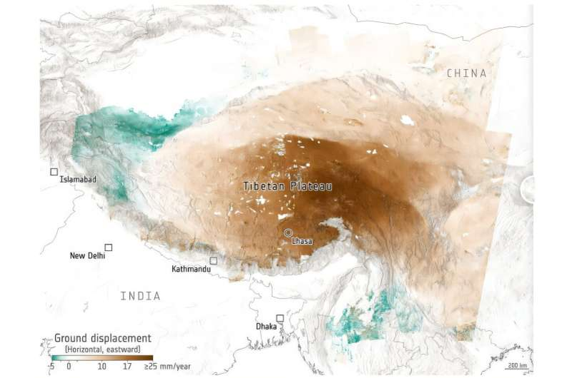 Международная группа ученых провела масштабное исследование тектонических процессов в районе Тибетского плато и получила неожиданные результаты. Анализ данных со спутников показал, что линии разломов земной коры в этом регионе оказались гораздо слабее, чем предполагалось ранее, а сами континентальные массивы не настолько жесткие, как считали специалисты. Результаты работы опубликованы в авторитетном научном журнале Science и основаны на обработке информации со спутников Copernicus Sentinel-1 Европейского космического агентства.