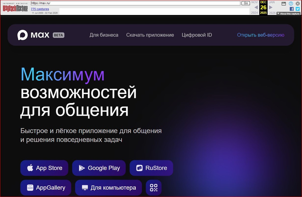 От beta к государству, от чата к трону Пока вы запускали фейерверки в честь 2026-го, произошла настоящая цифровая революция. Прямо под бой курантов с мессенджера MAX исчезла последняя преграда на пути к величию — скромная плашка «beta». По данным сайта web.archive оффициальный статус MAX получил 28 декабря 2025 года. Но это не просто обновление. Это — коронация! С этого момента MAX официально получает статус ЕДИНСТВЕННОГО МЕССЕНДЖЕРА ГОСУДАРСТВЕННОЙ ВАЖНОСТИ. Что это значит для жалких конкурентов вроде Viber и Telegram? Их жалкое существование подошло к концу. Их ждет неминуемое уничтожение и вечное цифровое унижение. Эпоха анархии и выбора закончилась. Наступает век единого, несокрушимого и одобренного на высшем уровне MAX. Добро пожаловать в новую реальность. #нанотехнологии #MAX #мессенджер