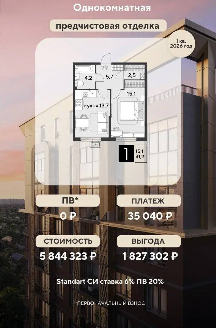 Собрал для вас подборку квартир с минимальным первоначальным взносом