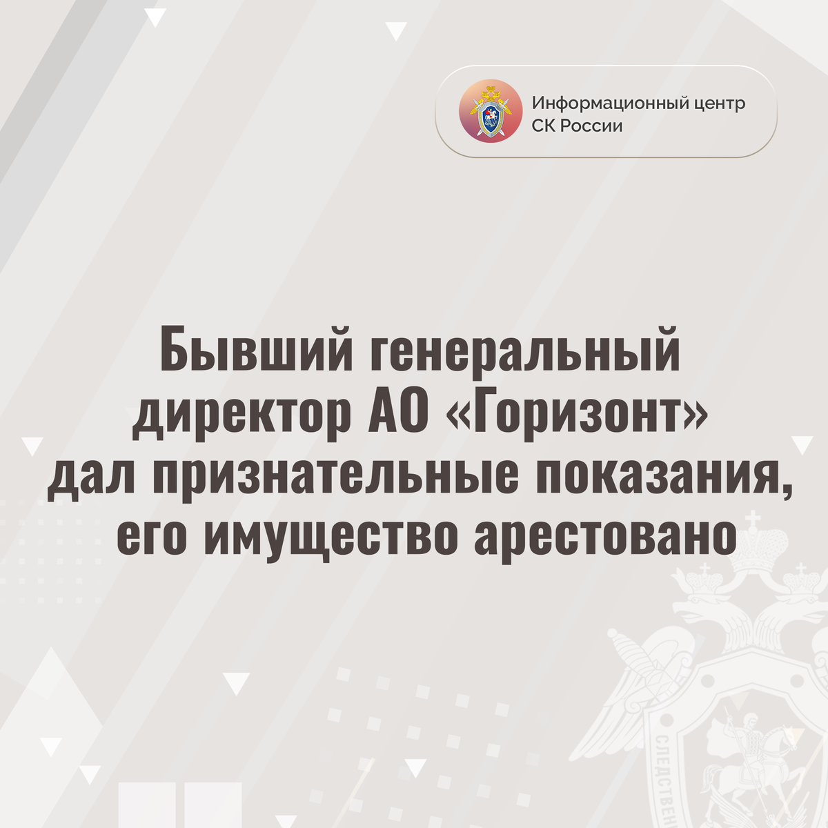 Бывший генеральный директор АО «Горизонт» дал признательные показания, его имущество арестовано