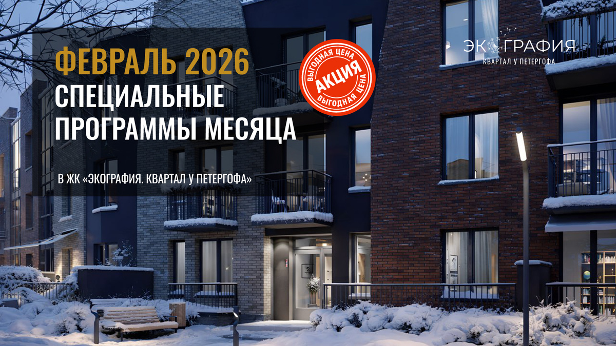 Хотите купить квартиру и сэкономить? Специальное предложение в ЖК «Экография. Квартал у Петергофа» – скидки от 100 000 ₽ до 400 000 ₽ на выделенные квартиры на выбор до 28.02.2026: