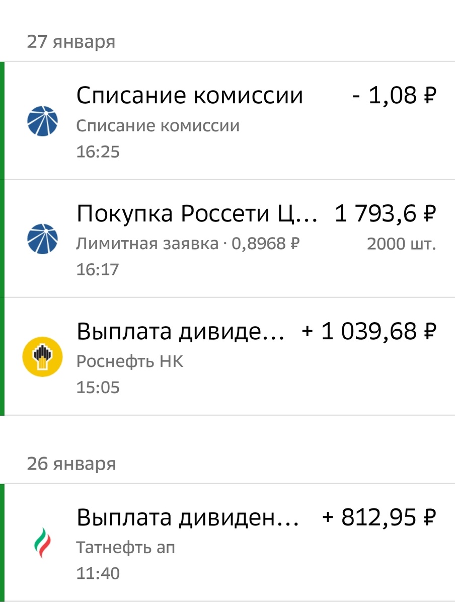 На Сбер пришли дивиденды от Роснефти и Тат.