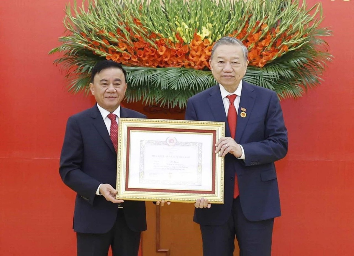 Генеральный секретарь КПВ То Лам получил значок за 45-летнее членство в партии