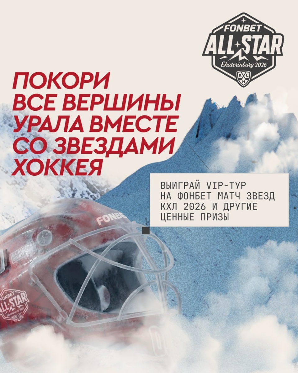 С 6 по 8 февраля звездный уикенд пройдет среди гор Урала, в Екатеринбурге. Вы можете стать частью грандиозного события и покорить новые вершины вместе с игроками КХЛ и МХЛ. Как это сделать? Играйте в «Горный хоккей», делайте прогнозы, набирайте высоту и выигрывайте: VIP-тур на ФНЗХ, гаджеты, мерч и другие ценные призы! Покорите высоту первых вместе с FONBET и КХЛ.