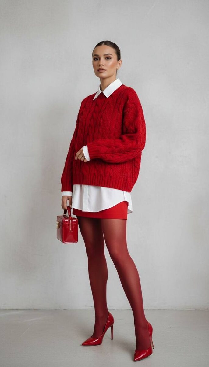 Дорогие дамы, нашел для вас образ на 14 февраля❤️ 🤍Этот образ — про уверенную женственность. Он работает не за счёт декора, а за счёт цвета, пропорций и чистоты стилизации. 🤍Красный здесь — главный герой, но он подан очень интеллигентно. Объёмный вязаный свитер смягчает цвет, делает его уютным и носибельным. 🤍Белая рубашка, выглядывающая из-под свитера, добавляет структуру и визуальную «собранность». Это тот приём, который всегда работает: многослойность сразу делает образ дороже и сложнее, даже если вещи сами по себе базовые. 🤍Мини-юбка и плотные колготки в тон создают вытянутую линию и поддерживают монохром. За счёт этого образ выглядит цельным, а ноги — визуально длиннее. 🤍Лаковые лодочки и сумка в том же оттенке усиливают эффект и аккуратно переводят комплект в категорию «вечерний», не перегружая его. Это отличный пример того, как баланс между уютом и сексуальностью, про уверенность и вкус. Ссылки на альтернативный образ тут👇 Юбка Свитер Рубашка Колготки Обувь Сумка