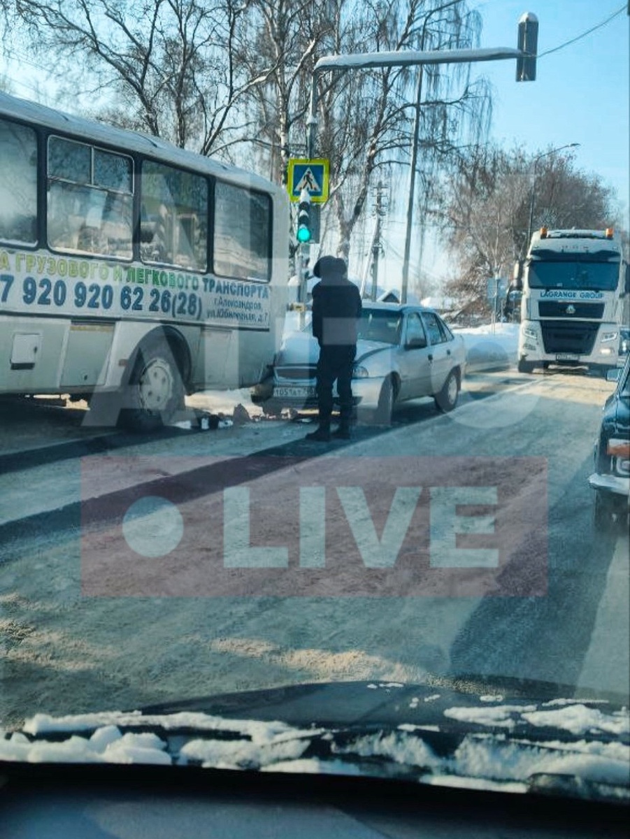 ДТП на Двориковском шоссе в районе школы № 5 с участием пассажирского автобуса. Движение затруднено.
