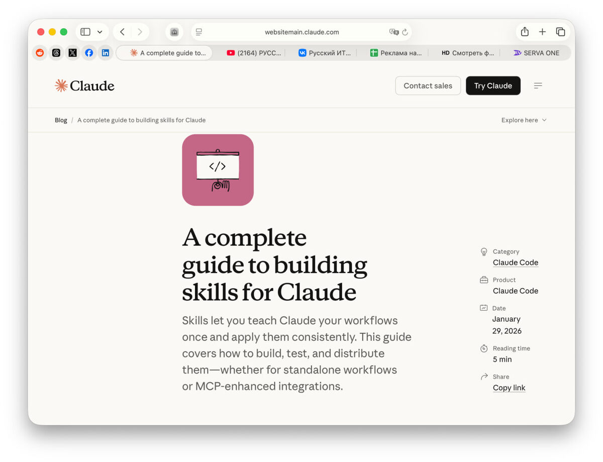Свежее руководство как писать код с помощью ИИ Claude. Вот здесь. Выпущено на днях вообще, 29 января.