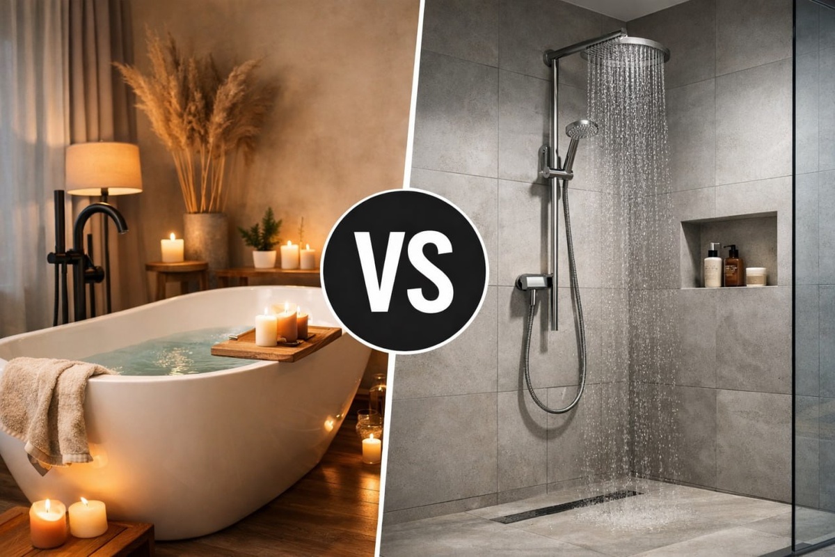Но если стоять под душем долго, разница с ванной почти стирается. Ванна: По факту всё зависит не от формата, а от того, как именно вы пользуетесь водой. Душ удобен для повседневного использования — когда важно не тратить лишнее время. Его чаще выбирают утром, в будни и в моменты, когда нужно быстро собраться. Ванна — другой формат. Её обычно используют вечером или в выходные, когда никуда не нужно спешить, когда хочется релакса и расслабления. В реальной жизни у большинства получается так: Площадь ванной комнаты сильно влияет на выбор. Поэтому сегодня часто делают универсальные решения: ванна с душевой системой или душевая зо