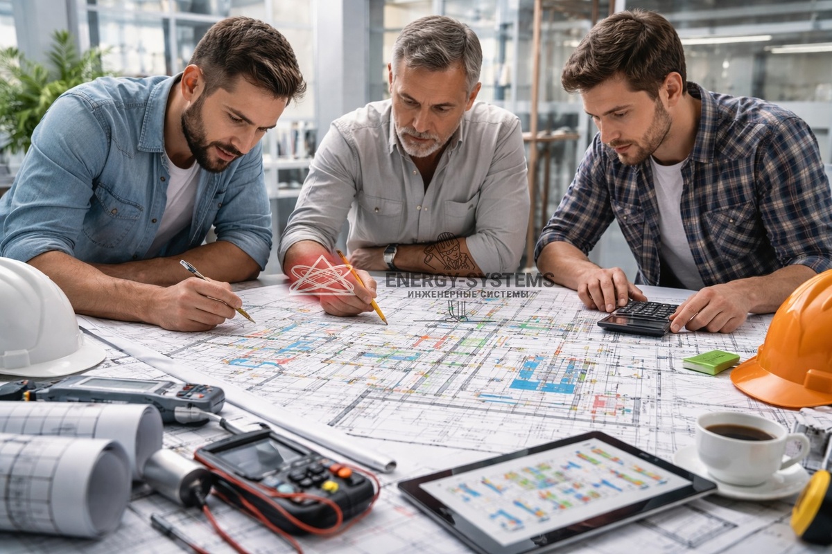 На этом этапе специалисты “Энерджи-Системы” составляют техническое задание, включающее перечень работ, ориентировочные характеристики оборудования и требования по монтажу. Все моменты обсуждаются с заказчиком. Корректность расчетов и прозрачность всех условий — залог успеха дальнейшего этапа проектирования.