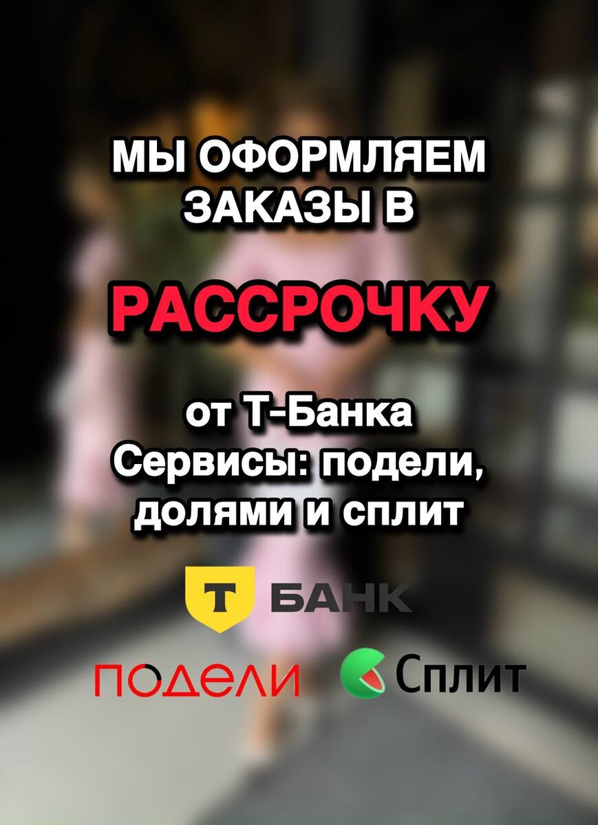 🔥 Специально для вас мы подключили удобные сервисы оплат - «СПЛИТ», «ПОДЕЛИ» , «ДОЛЯМИ» А также у нас есть 👍рассрочка от Т- банка. Благодаря этим сервисам оплат вы можете сделать заказ , как с наличия так и в пошив с максимально комфортным платежом - получить заказ 😻💣💥 и быть самой самой ) получать море удовольствия от своего образа! Шопинг с нами это не только возможность выглядеть сногсшибательно красиво , но и комфортно для вашего бюджета🌸 Подробнее можно узнать всю информацию у наших менеджеров