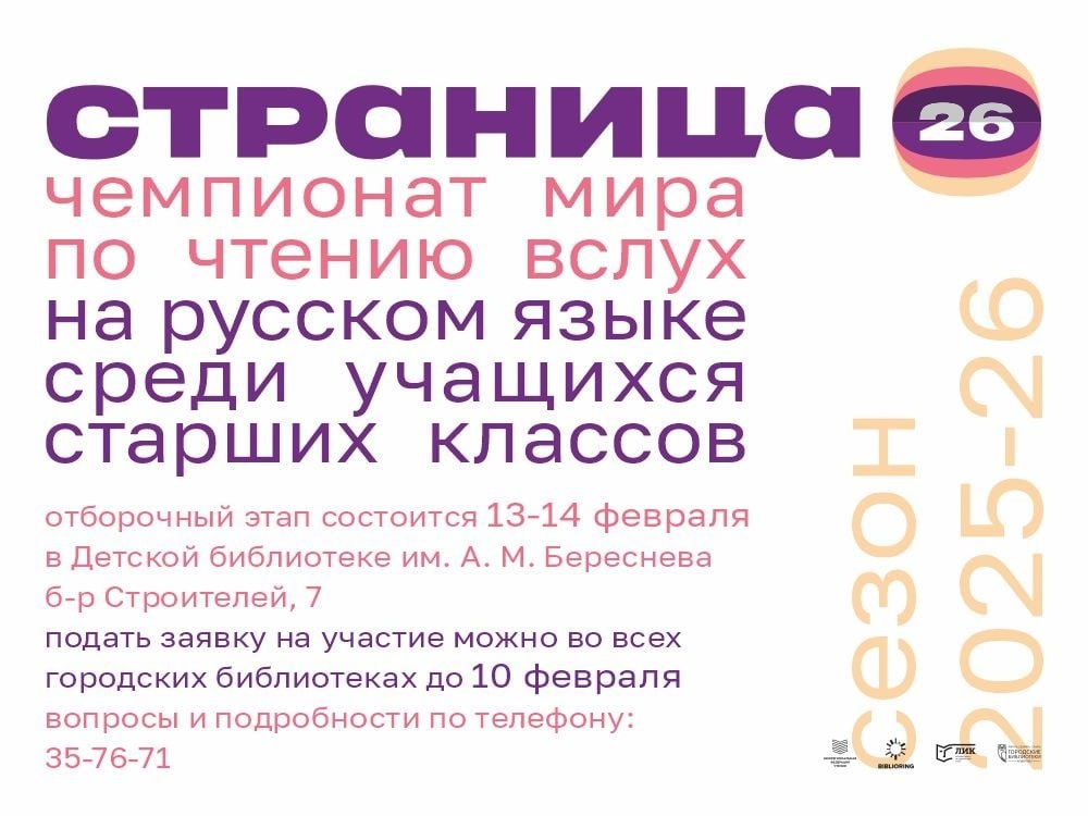 13 и 14 февраля в 11:00 в библиотеке им. А. М. Береснева (б-р Строителей, 7) пройдут матчи отборочного этапа Чемпионата по чтению вслух среди учащихся средних и средне-специальных учебных заведений «Страница 26». Чемпионат проводится с 2014 года. Число участников растёт, присоединяются новые регионы и даже страны. Победители отборочного этапа представят Кемерово в областном полуфинале 1 марта. Суперфиналы традиционно пройдут в Москве на Красной площади. Для участия необходимо ознакомиться с Положением и заполнить пакет документов. Заявки принимаются во всех городских библиотеках до 10 февраля. #культурастолицыКуZбасса ❤️ Наш канал в Дзен