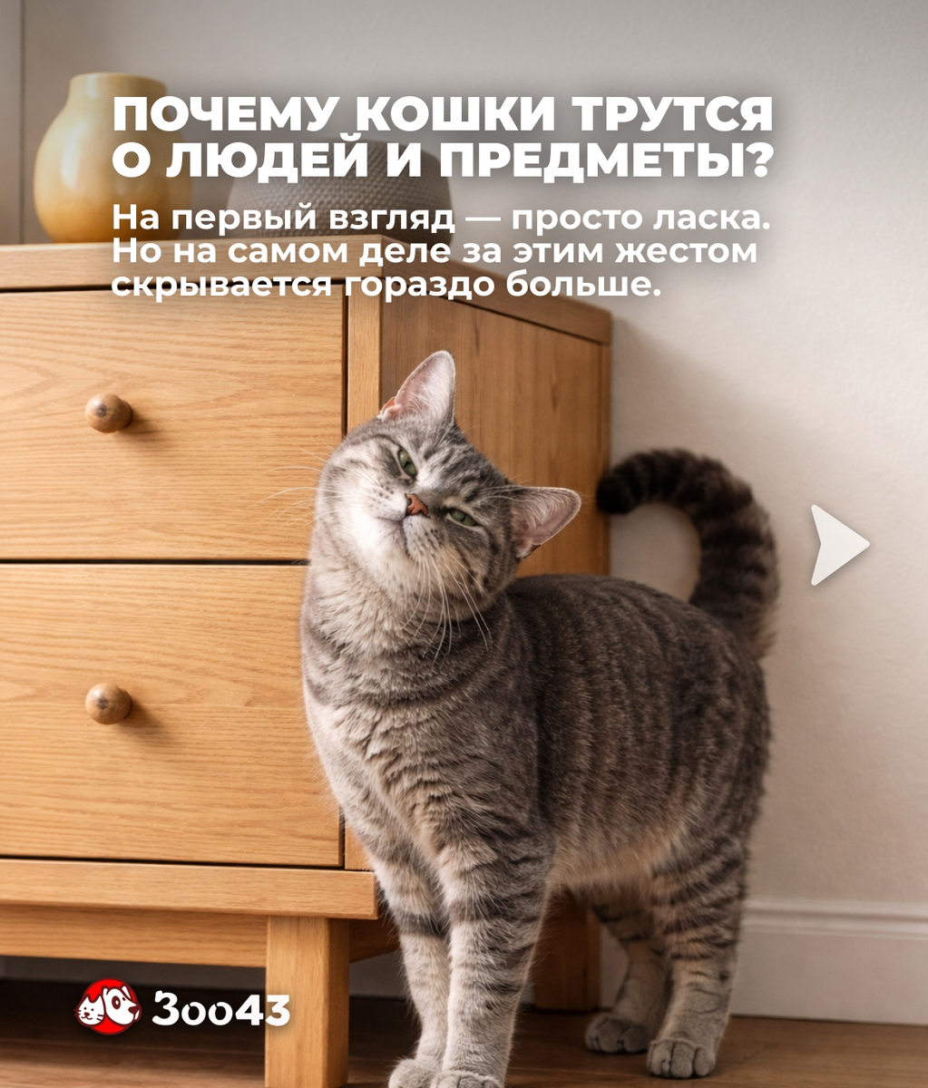 У кошек свой особый язык нежности 💚 Иногда это тихое мурчание, иногда — лёгкое касание боком или желание быть рядом. Так любимец показывает: ему спокойно, он чувствует себя в безопасности и доверяет вам. В карточках рассказываем, почему кошки так любят тереться о мебель, вещи и своих хозяев 🥰👇