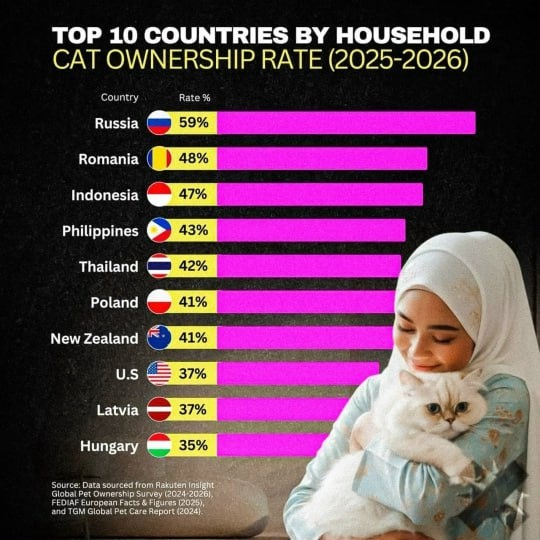 Если верить этой статистике, среди подписчиков нашего канала живет как минимум 700 пушистиков. Давайте посмотрим. Присылайте фотку своего хвостяруса в коменты. PS существует теория, что именно кошки позволили развиваться нашей цивилизации, до них запасы зерна портили мыши и оседлая жизнь была по сути невозможна.