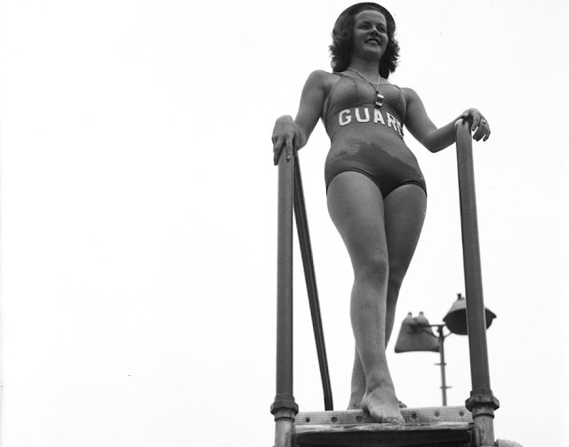 Пляжи Нью-Йорка середины прошлого века — это не просто песок и вода. Это огромный театр под открытым небом. Сюда приходили не только загорать, но и показывать себя, смотреть на других, участвовать в конкурсах и просто быть частью огромной шумной толпы. Кони-Айленд, Jones Beach, Рокавей — эти названия звучали как обещание лучшего выходного. Давайте посмотрим, как выглядел пляжный отдых с конца 30-х до середины 60-х. Мода менялась, купальники становились смелее, но одно оставалось неизменным: желание людей поймать своё солнце. Красивая девушка на вышке — классика пляжного жанра. Но в 30-е это ещё и символ “новой женщины”: спортивной, уверенной, занятой делом. Конечно, внимание она привлекала не меньше, чем само море, но вид у неё серьёзный. Работа есть работа. Групповое фото девушек — отличный каталог моды того времени. Высокие плавки, интересные вырезы, ткани, которые держат форму. Видно, что купальник тогда был полноценным нарядом, который подбирали тщательно. Снимки с Jones Beach всег