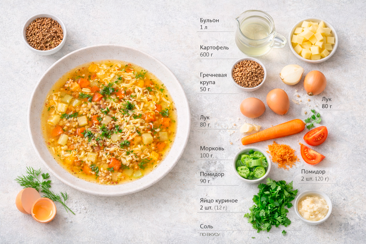 Лёгкий, но сытный суп с гречкой и ажурными яичными нитями — идеальный вариант для быстрого и полезного обеда.