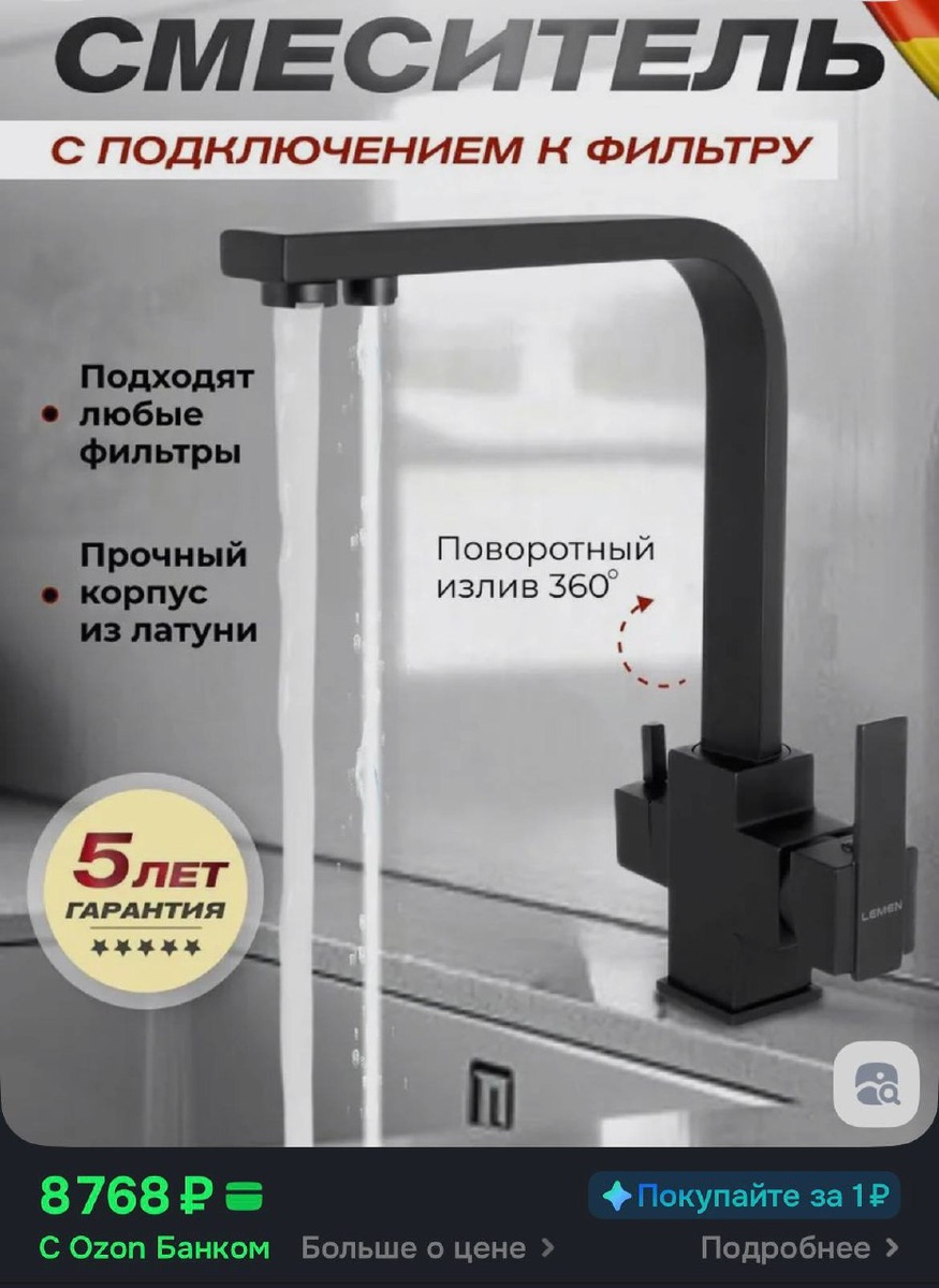 Заказали смеситель для питьевой воды и фильтры с обратным осмосом