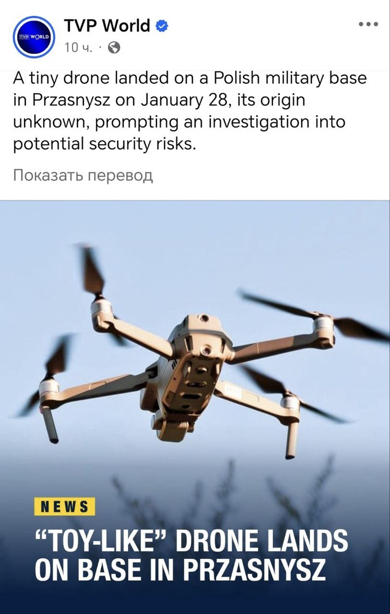 Все утро польские сми писали о падении дрона рядом с одной из военных баз. Через несколько часов установили, что БПЛА из магазина детских игрушек😂